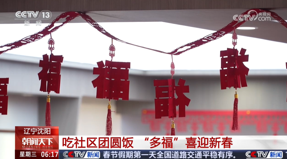除夕当天,辽宁沈阳多福社区的居民们一大早就忙碌了起来,居民们包饺子、写春联、贴福字,热热闹闹吃团圆饭。