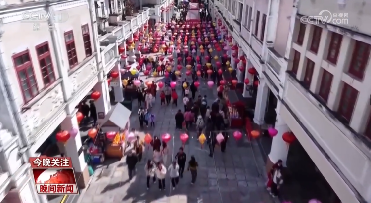 在广东中山,百年老街孙文西路步行街举办形式多样的文旅活动,还设有“新春喜市”美食文化集市,汇集了多家中山本土粤菜名厨主理美食及各镇街特色小吃摊位,吸引四面八方的游客感受浓浓的岭南年味。