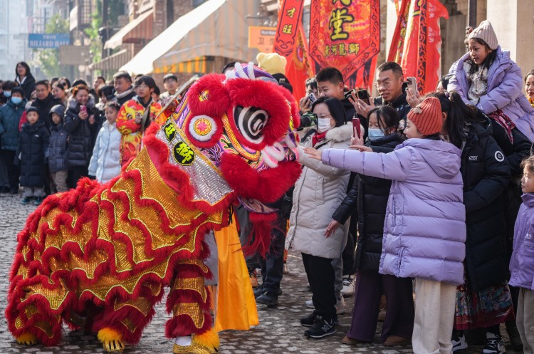 街道转角处突然锣鼓震天,一条由9人舞动的长龙从巷口腾跃而出,活灵活现地欢腾起舞,或上下翻飞,或蜿蜒盘旋,引得游客阵阵喝彩,拍照留念。另一边,几只活泼灵动的“舞狮”跑到孩子们面前撒娇卖萌,逗得孩子们喜笑颜开,纷纷上手摸摸“舞狮”头。