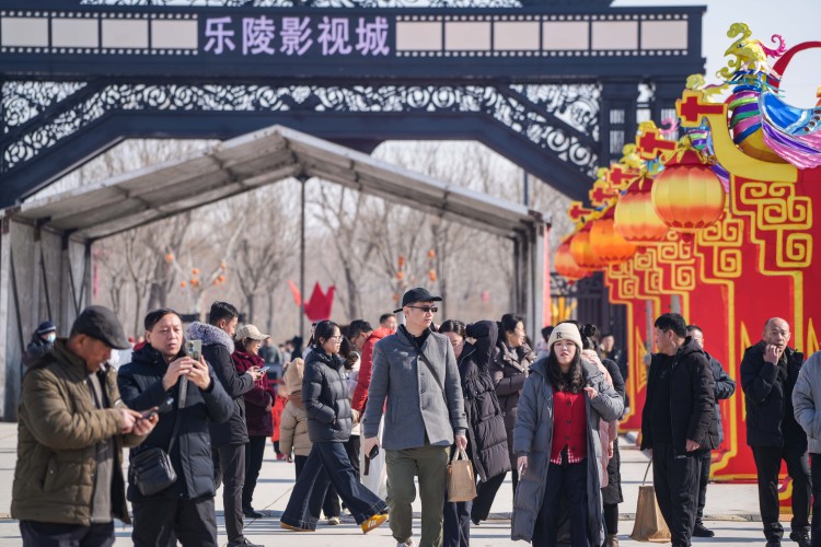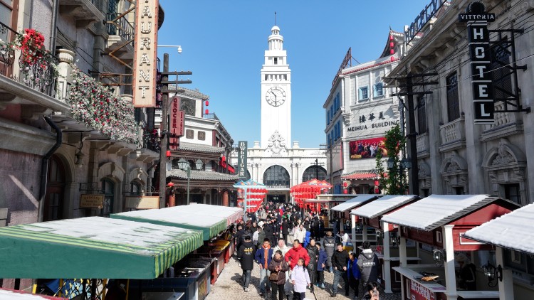 1月29日(正月初一)上午,随着电影《唐探1900》在全国院线正式上映,山东省乐陵市乐陵影视城举办的“跟着电影去旅游2025跟唐探·贺岁游”活动正式拉开帷幕,限时开放的《唐探1900》拍摄取景地“唐人街主题园区”吸引了全国各地游客前来打卡,迎来春节假期旅游“开门红”。