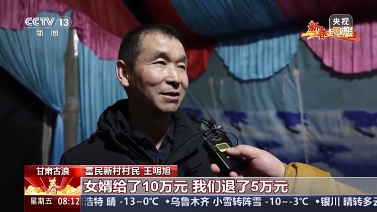 富民新村村民 王明旭:女婿给了10万元,我们退了5万元,剩下的用于婚礼的开销。要得多了,也是给年轻人增加负担。