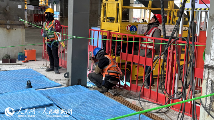坚守岗位的雄安国贸中心项目建设者正在进行焊接作业。人民网记者 刘师豪摄