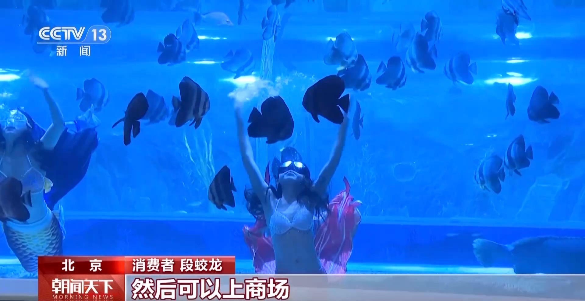 这两天,北京这家开在商场里的海洋馆可谓是人气满满,客流量比平日增长50%。馆内不仅可以看到各种海洋生物,还可以欣赏“美人鱼”表演。