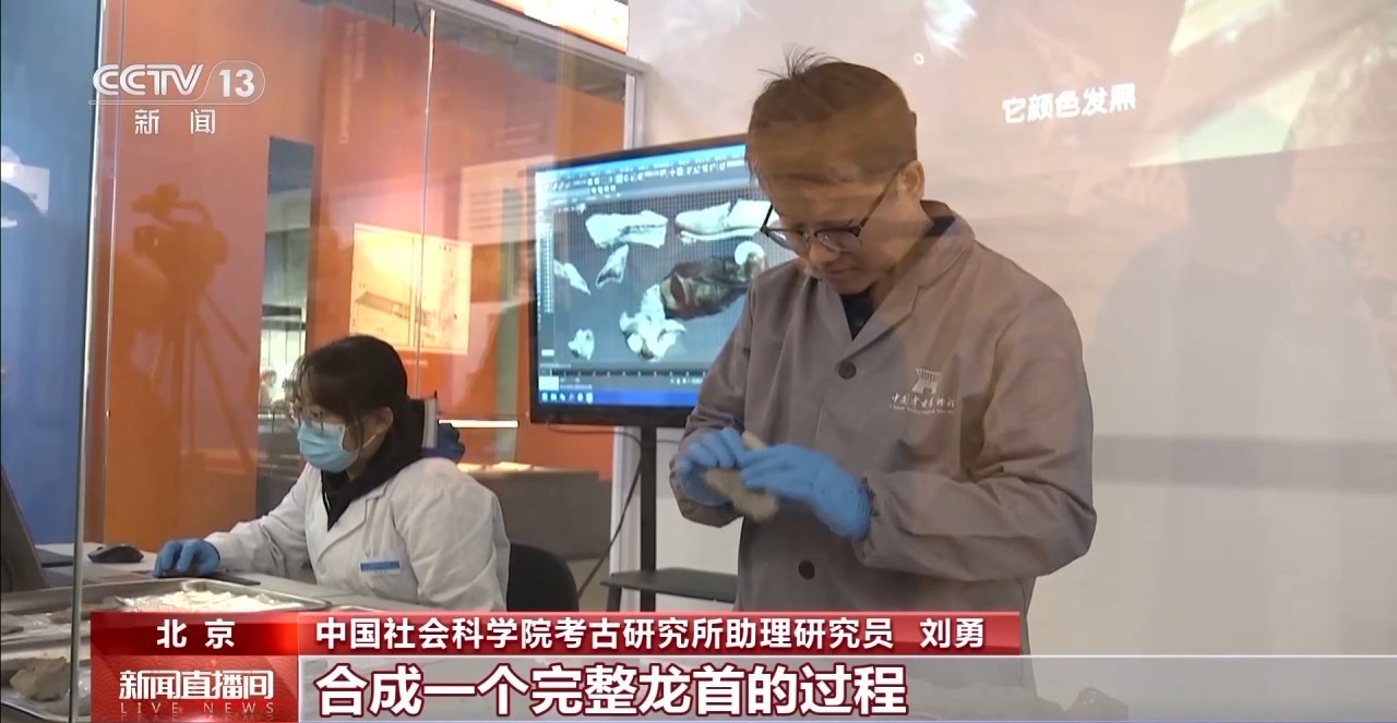 中国社会科学院考古研究所助理研究员 刘勇:2024年10月28日,这个龙首出土于雄安新区古州城遗址。我们的实验室已经完成了脱盐和烘干工作,现在进入了后期的拼对和粘接阶段,所以我们可以在这里和公众分享把它从这么多碎片合成一个完整龙首的过程。