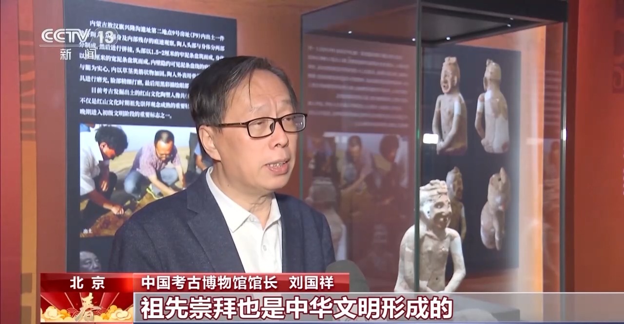中国考古博物馆馆长 刘国祥:这是红山人供奉的祖先的形象,祖先崇拜也是中华文明形成的重要精神要素之一。这样的一件珍贵文物,从发现到修复,到展示,可以看到考古工作的整个历程。