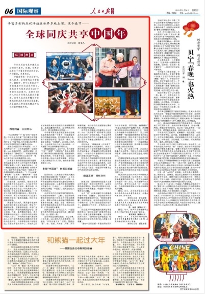 四海同春,五洲同乐。徜徉在世界各地的春节庆祝活动中,人们会有共同的观感:处处张灯结彩,喜庆热闹;各类文艺演出精彩纷呈;中式美食令人一饱口福;特色年俗更是妙趣横生……许多人沉浸式感受中国年味儿,乘兴而来,尽兴而归。来自不同国家的人们在春节时刻共同绘就一幅其乐融融、和合共生的美丽画卷。