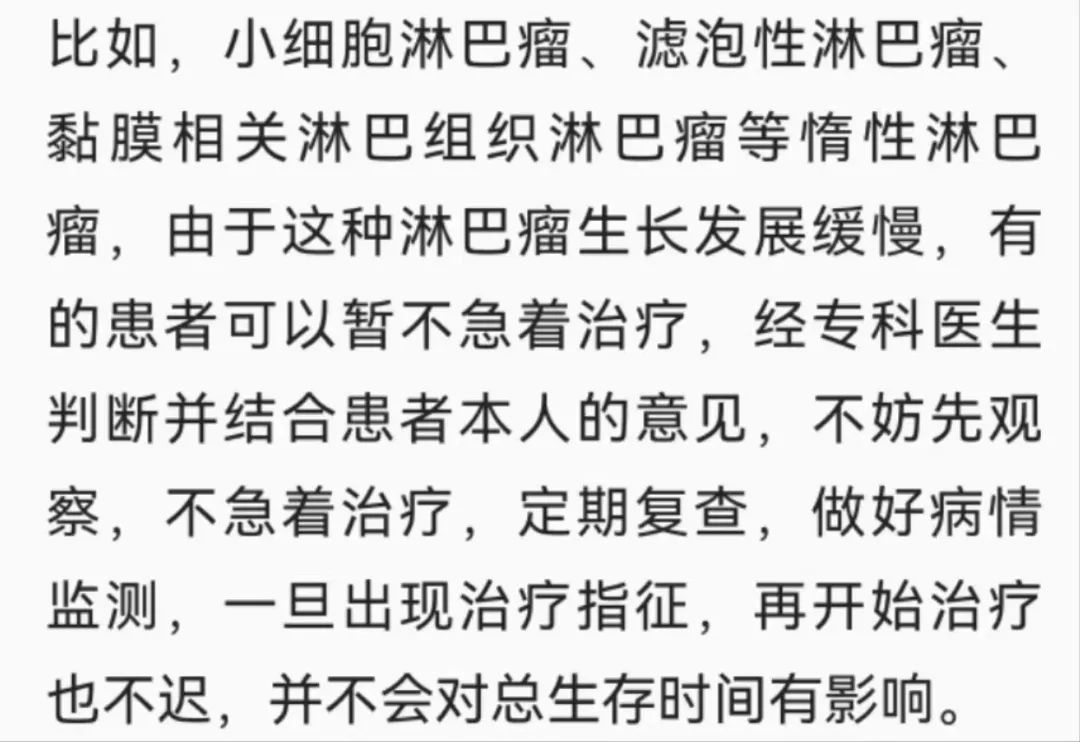 3.尽管已经明确诊断了是什么病,但可以暂不处理,这种情况也可以观察等待,即所谓watch and wait(观察等待),一旦出现需要治疗的指征,再开始启动治疗,并不会对总的预后有影响。
