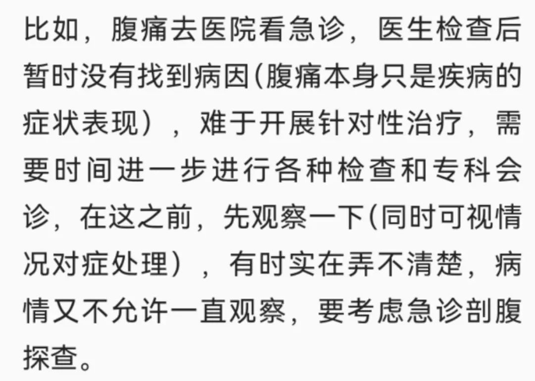 其实在医学上,“观察”也是一项医疗处置措施,而且非常常见。那什么情况下要“观察观察”呢?归纳了一下,大致可能包括以下几种情况: