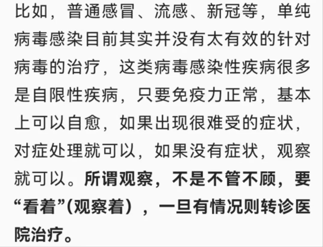 4.有的疾病或者说有的病情,或者本身就是自限性疾病(不治疗通常也会自愈),而且目前也没有太有效的治疗手段,那也通常是观察,也就是不用什么特别的医疗措施,或者仅对症处理。