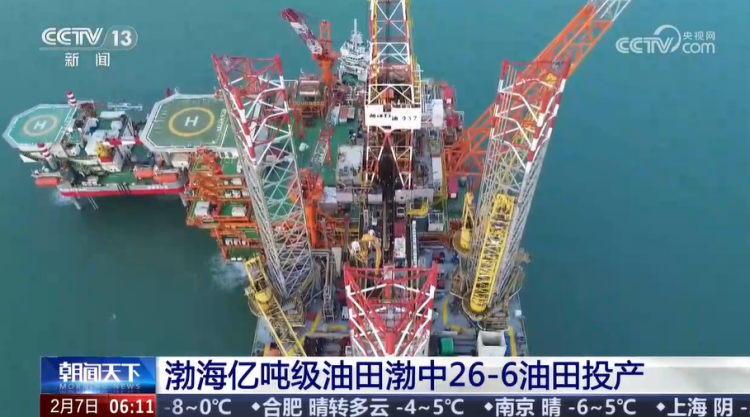 央视网消息: 记者2月7日从中国海油获悉,位于我国渤海的亿吨级油田渤中26-6油田开发项目顺利投产,标志着全球最大变质岩潜山油田正式进入生产阶段,对保障国家能源安全具有重要意义。