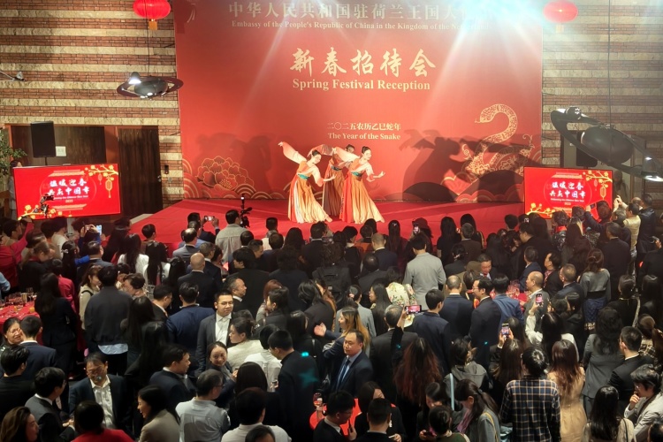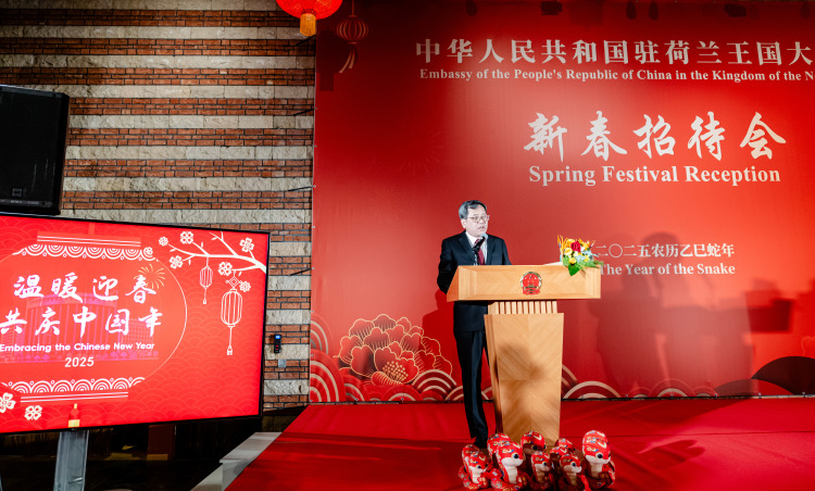 2月11日,驻荷兰使馆举办2025年“温暖迎春·共庆中国年”新春招待会,在荷华侨华人、中资机构人员、留学生、国际职员代表等500余人出席。