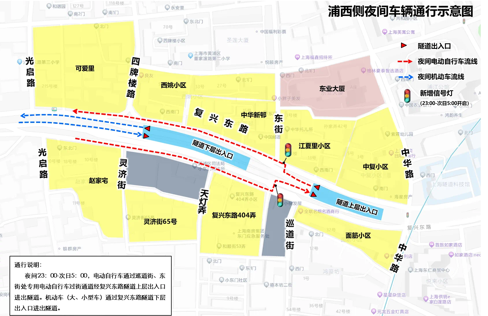 2月16日晚,经过改造的上海复兴东路隧道上层首次向电动自行车开放。每天23时至次日5时,隧道上层开放电动自行车,其间机动车均通过下层隧道通行。