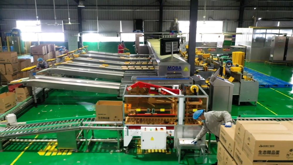 在湖北建始的一处养殖基地内,一枚枚当天产的新鲜鸡蛋通过流水线不断传输。经过分拣、杀菌、打包、装箱的鸡蛋将被发往江苏、浙江等地。