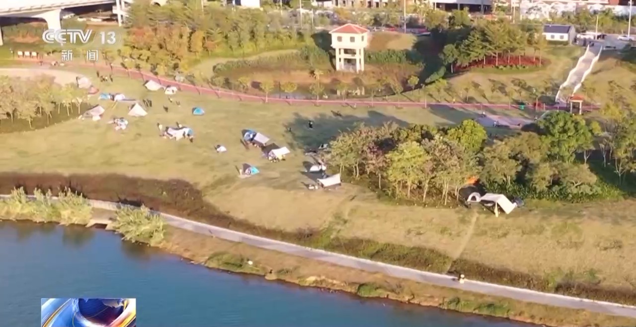 随着“本地游”和“近郊游”兴起,城市露营地也不断涌现。在广西规划馆旁的一处城市露营地里,各式帐篷应有尽有。