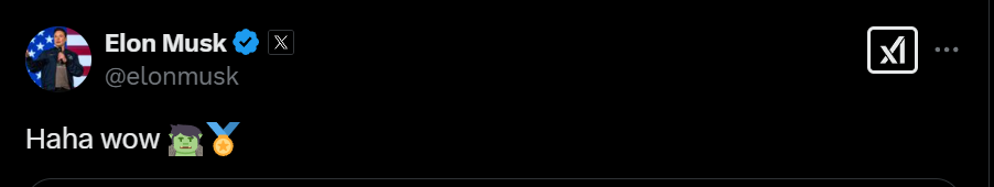 被视为特朗普得力顾问的美国企业家马斯克也转发白宫这则帖文并附上表情符号称,“哈哈,哇。” ↓