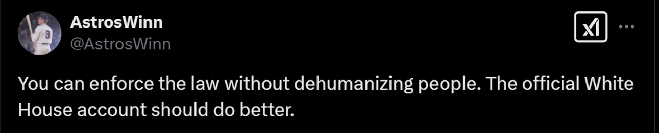 “你可以在不剥夺他人自尊的情况下执法。白宫官方账户应该做得更好。” ↓
