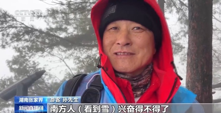 游客 孙先生:南方人看到雪兴奋得不得了,非常开心。