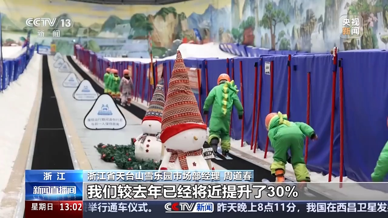 浙江省天台山雪乐园市场部经理 周道春:春节期间,整个客流来说的话,我们较去年已经将近提升了30%。