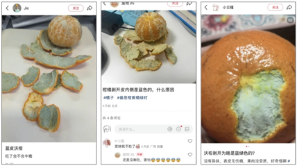 除了铜离子氧化,沃柑果皮内侧变蓝也可能是由于细菌或(真菌中的)霉菌感染。在高温高湿的环境中,真菌孢子很容易侵入沃柑内部,导致其变质并产生霉变。如果沃柑内部的蓝色是由于霉菌感染引起的,通常会伴随其他变质迹象,比如异味、果肉发软或表面出现霉斑。