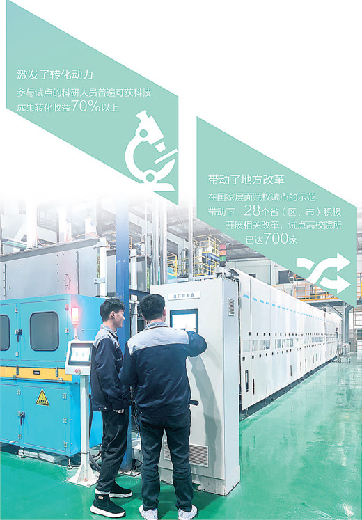 据不完全统计,在国家层面赋权试点的示范带动下,28个省(区、市)积极开展相关改革,试点高校院所已达700家。