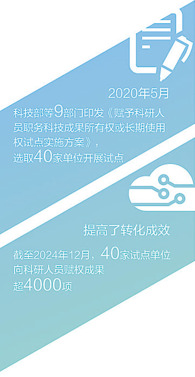 赋予科研人员职务科技成果所有权或长期使用权,鼓励“放心转”