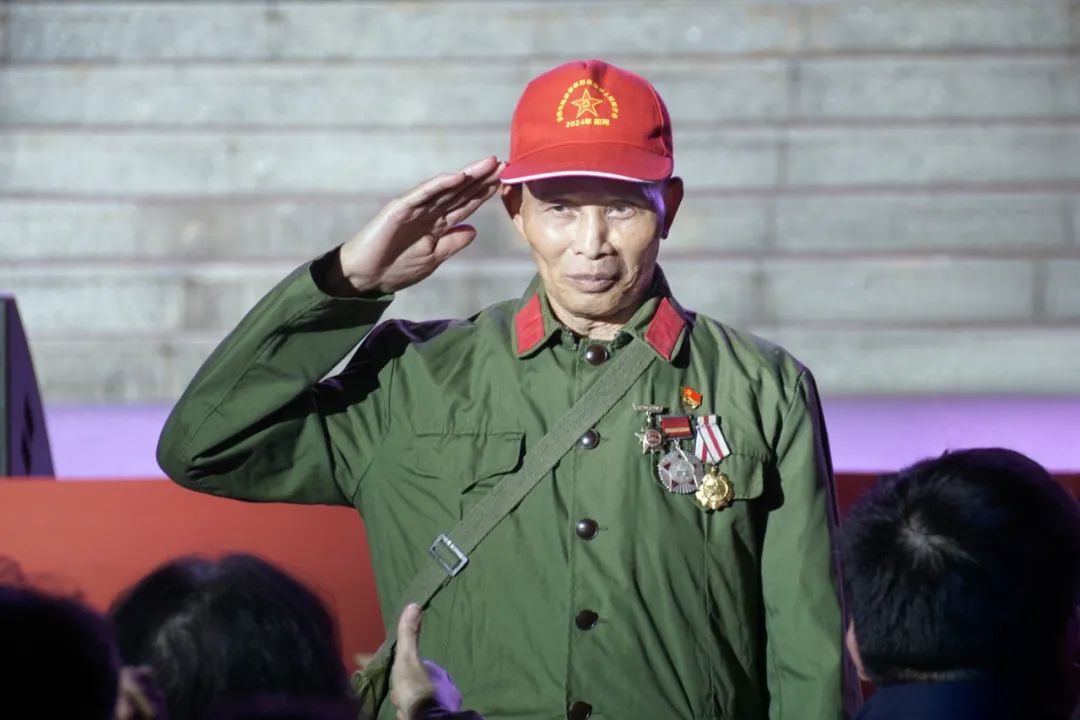 龙旭堂、欧仔万两位一等功臣来到现场,为晚会增添了庄重而崇高的色彩。此外,96岁高龄的“共和国勋章”获得者李延年同志未能来到现场,通过视频的形式向晚会送来了真诚祝福。