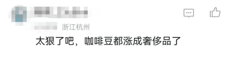 对于咖啡豆涨价一事,有网友表示:“每天一杯咖啡的习惯看来要改改了!”