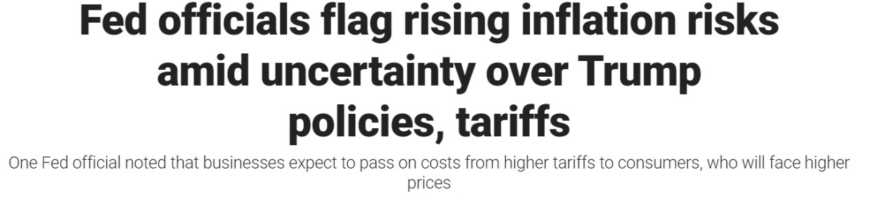 美联储日前公布的1月货币政策会议纪要显示,因担心特朗普政府的关税政策可能成为推高通胀的一大因素,美联储官员一致同意维持现有利率不变。