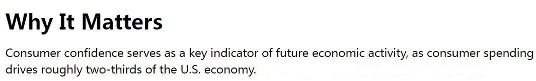 CCI既反映美国人对当前经济状况的评估,也反映他们对未来六个月的展望,是预测美国未来经济前景的关键指标。