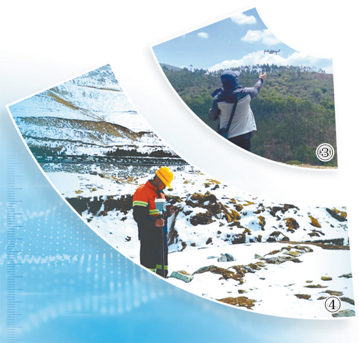 图③:技术人员正在放飞无人机执行勘探任务。图④:科研人员在开展野外地质调查。以上图片均为受访单位提供