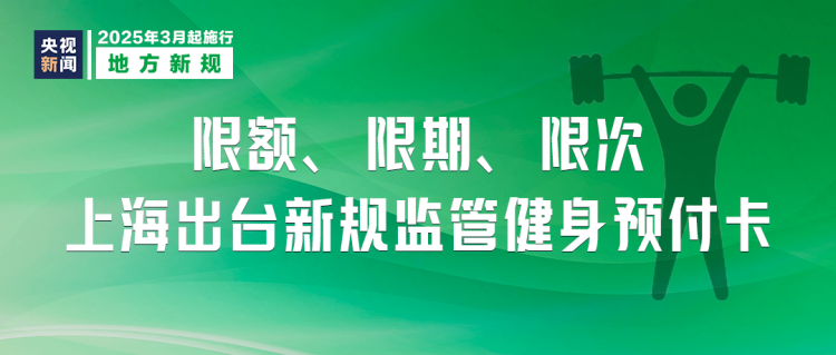 《上海市体育健身行业预付式消费经营活动监管实施办法(试行)》3月1日起施行。办法规定经营者不得对同一消费者一次性收取或者变相收取金额超过5000元、时长超过24个月的会籍类预付款;金额超过20000元、次数超过60次的课时类预付款;金额超过5000元的储值类等预付款。