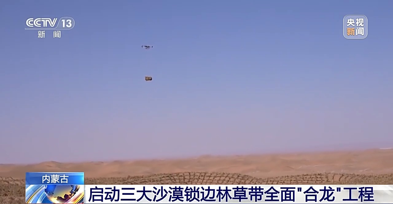 面对广袤的沙化土地和复杂的地形条件,传统的治沙作业效率低下。工程人员利用无人机,解决了撒播草籽和物料投送的难题。在治沙现场,一架大型无人机缓缓升空,悬吊草料,沿着预设路线飞向目标区域。无人机单次运输量可达60公斤,最远投送距离达到4公里。
