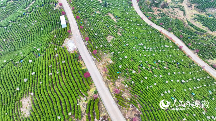 人民网繁昌3月1日电 (汪瑞华、郭昊)惊蛰节气前,气温回暖,在安徽省芜湖市繁昌区孙村镇梅冲村的万春源茶山,2000亩梅花竞相绽放,已经进入盛花期。