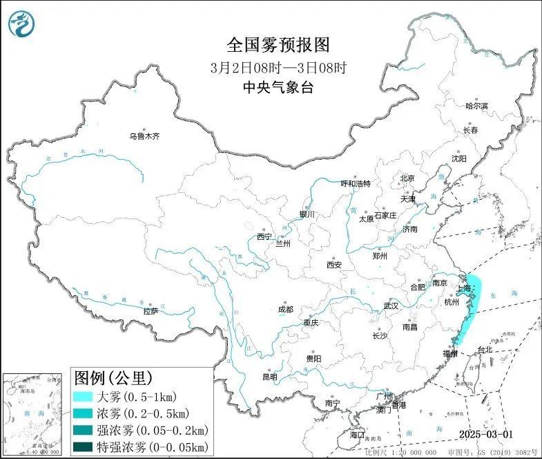 预计,3月2日白天至夜间,长江口及杭州湾附近海域、舟山群岛附近海域、浙江沿岸海域、上海港、宁波港将有能见度不足1公里的浓雾。