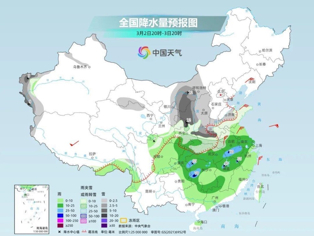 昨天(3月1日),寒潮的威力已经开始显现,中东部大范围雨雪天气正式上线。预计今天,雨雪天气的范围将扩大,降雪强度也会加大。并且,随着气温下降,雨雪相态将出现转换。陕西北部、河北南部、山东西北部、河南北部等地将转为降雪,上述局地或现大到暴雪。