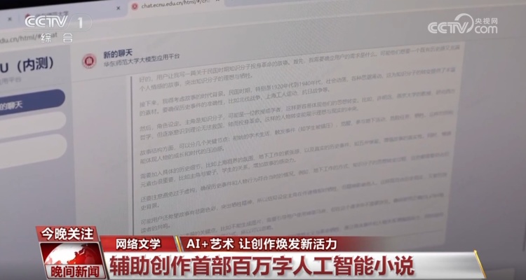 在文学领域,AI也提供了全新的写作模式。日前,华东师范大学用AI以“人工智能大语言模型+提示词工程+人工后期润色”的方式,创作出国内首部百万字人工智能小说。人工设计故事框架、提示词,AI完成人物关系图谱、批量段落写作、完善故事细节。一位勤奋的写手,全年无休写作完成这样一部作品需要一年半,而用AI的方式只需要一个半月。