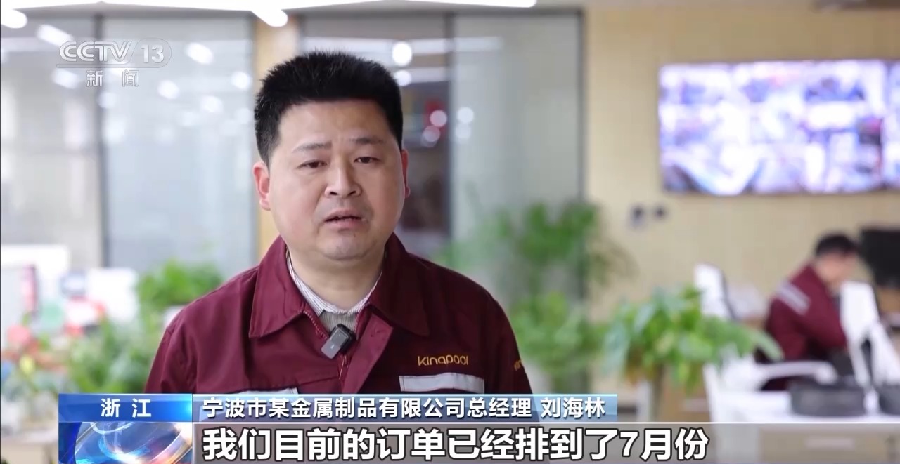 宁波市某金属制品有限公司总经理 刘海林:我们目前的订单已经排到了7月份,订单量比去年增加了20%左右。