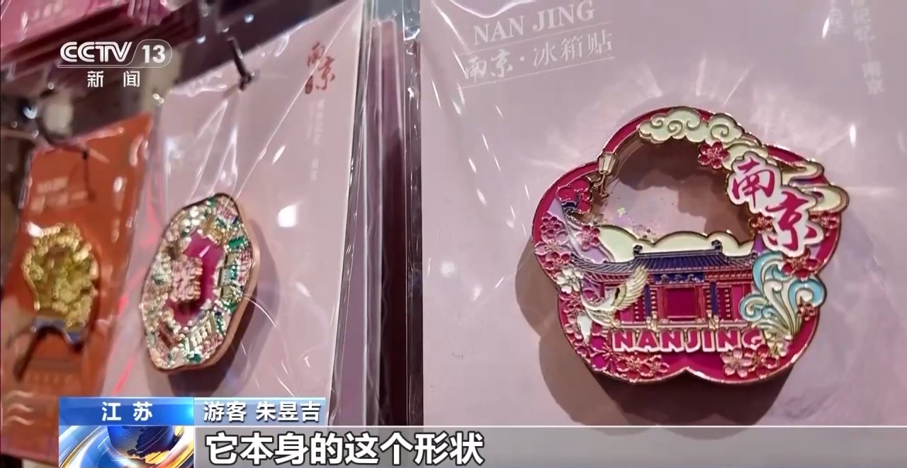 游客 朱昱吉:非常精美,而且种类繁多。它的设计感,也是融合了南京各种各样的景点。比如说这款,它本身的这个形状就是一个樱花形状,也是很符合南京的景点特色。