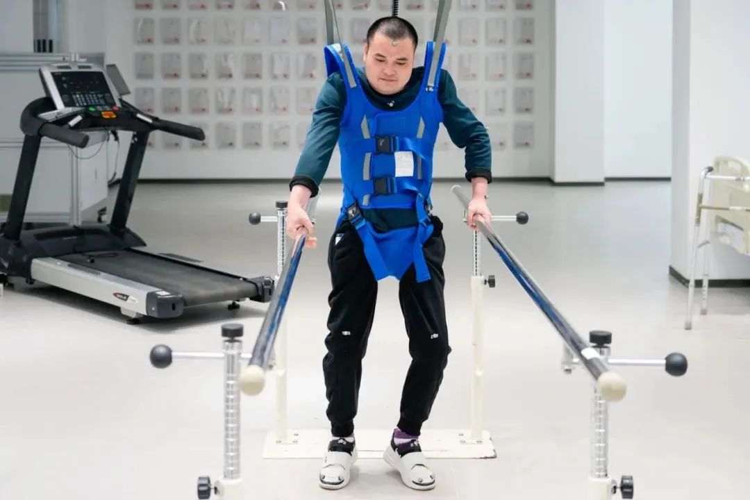 术后第14天,患者依靠自身运动意图行走。复旦大学供图