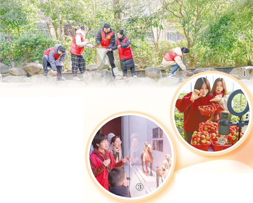 图①:安徽合肥庐阳区亳州路街道,党员志愿者们在捡拾垃圾。