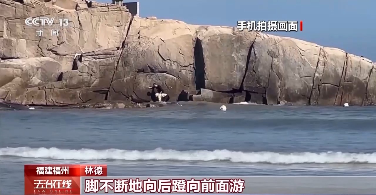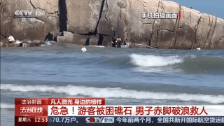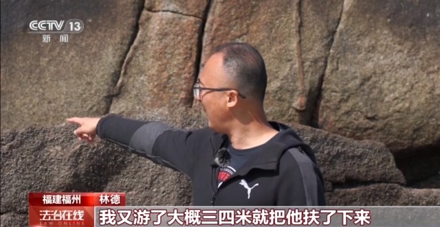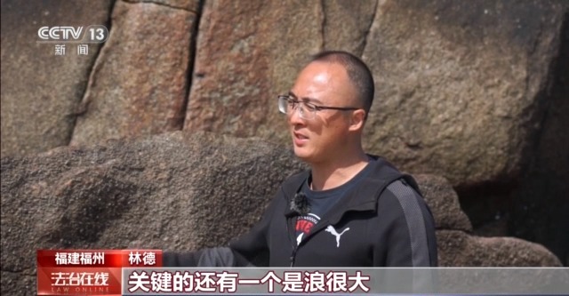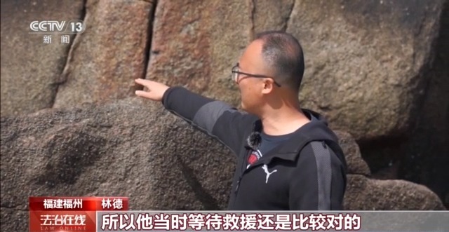 林德:他当时是有想自己撑下来,从这边顺着边缘进去,但因为水深很高,然后再加上有浪一卷,很容易把他又拖到外面来,再加上这里的岩石非常错综杂乱,下面都是海蛎壳,也很锋利,所以他当时等待救援还是比较对的。