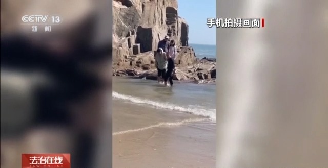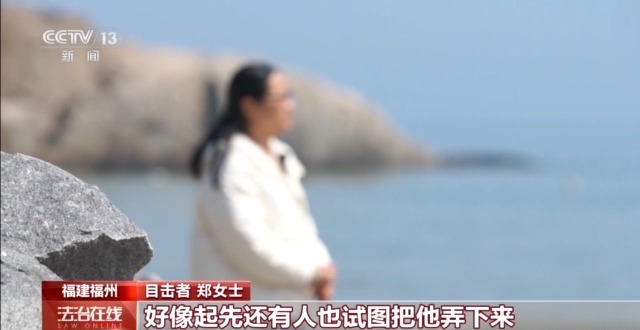 目击者 郑女士:我们过来的时候他已经被困一会了,好像起先还有人也试图把他弄下来,但是听说都没有成功。然后我们看海水越来越高。