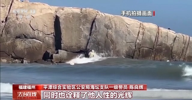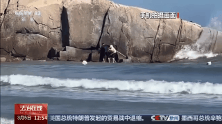 今年2月1日,也就是大年初四,福建福州平潭县的林德在海边沙滩上游玩时,看到有人被困在一块礁石上,他见状立即冲了上去。