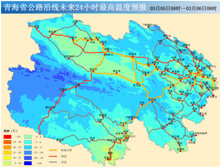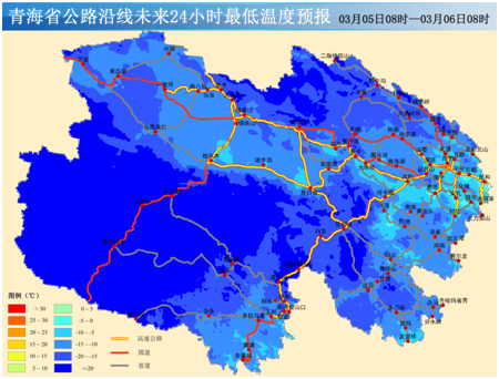 03月05日08时~03月06日08时:今天白天至夜间,湟中、湟源、循化、德令哈、天峻、乌兰、都兰、玛沁、甘德、久治、兴海、贵南、同德、同仁、河南的部分乡镇有暴雪(10~13毫米,局地可达15~18毫米),西宁大部、海东、海北、海西东部、果洛、海南、黄南有中到大雪(2.5~9毫米),省内其余地区有小雪(0.1~2.4毫米);今天白天,全省大部日最高气温将下降4~6℃,局地8℃以上;西宁、海东有4~5级偏东风;柴达木盆地有6~7级偏西风,并伴有短时沙尘。