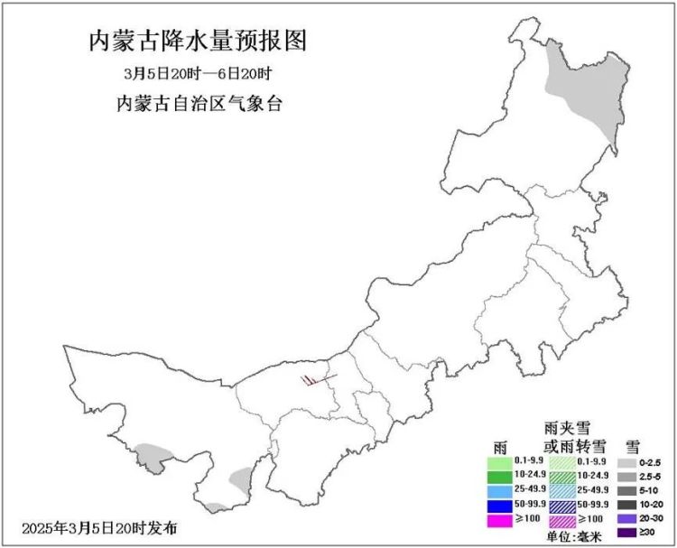 我区西部偏西、东北部地区多云,阿拉善盟南部、呼伦贝尔市东北部有小雪或雨夹雪,其余地区晴间多云;西部偏东北、中部偏北地区4、5级短时6级偏西风。