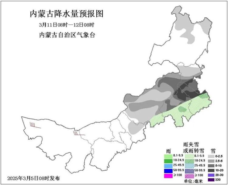 内蒙气象台的中期预报指出,9日开始,新的大范围雨雪到来,而且持续到12日前后。主要降水集中在锡林郭勒盟以东地区,锡林郭勒盟北部和中部、赤峰市中北部、通辽市中北部、兴安盟南部有中到大雪或雨夹雪,局地有暴雪。从时间节点来说,3月第二场大范围雨雪目前算是处于倒计时了,这将是3月以来我区出现的最强、最持久的一场雨雪过程,为什么这么说呢?