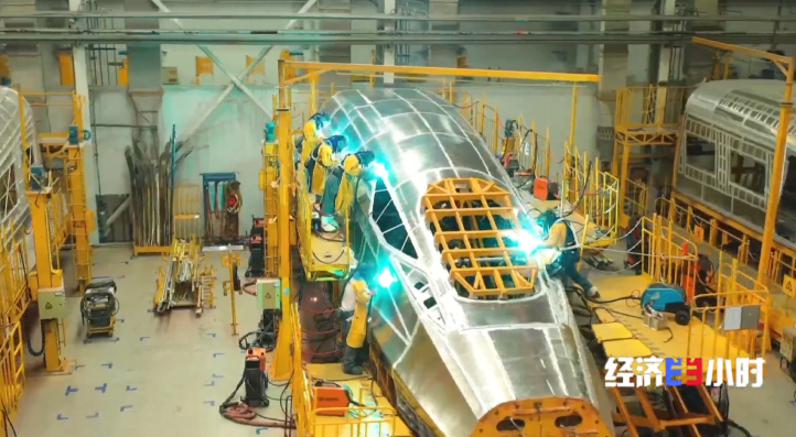 像动车组这样的庞然大物,要求焊接误差控制在5mm左右。现在车体的关键焊缝90%都实现了机器人焊接。