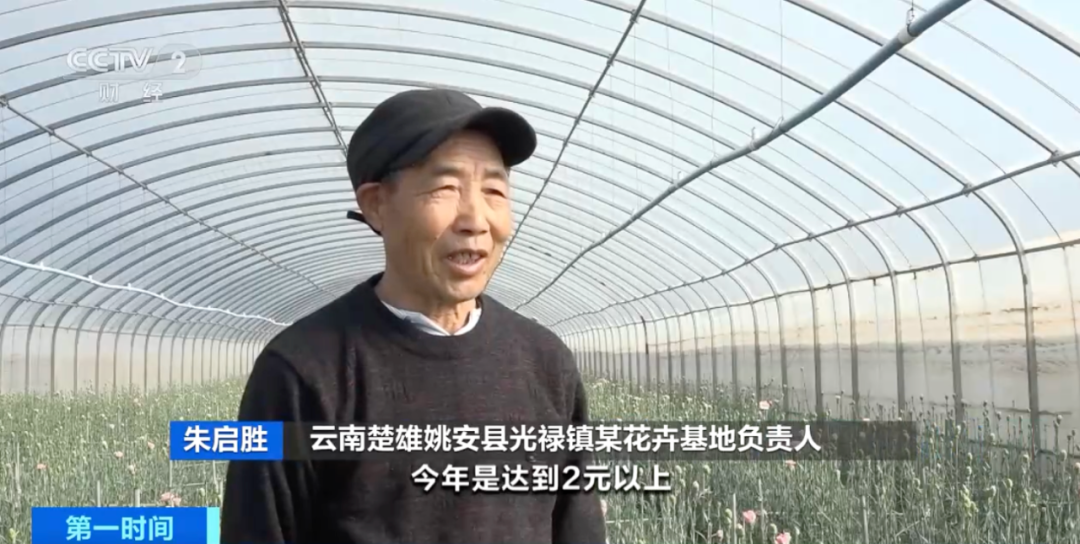 云南楚雄姚安县某花卉基地负责人 黄崇泽:这两天我们的均价达到了3元多一枝。与去年同期相比,均价是有10%到20%的提高。