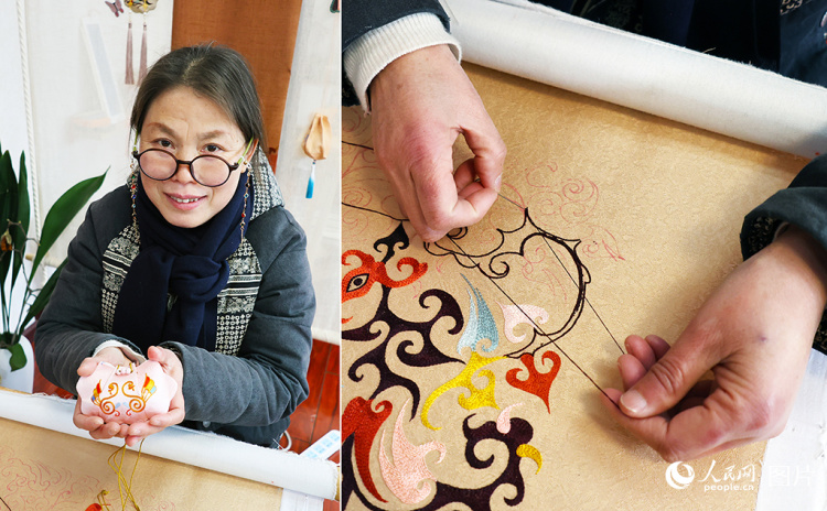 汪宣珍正在做刺绣。人民网记者 王郭骥摄