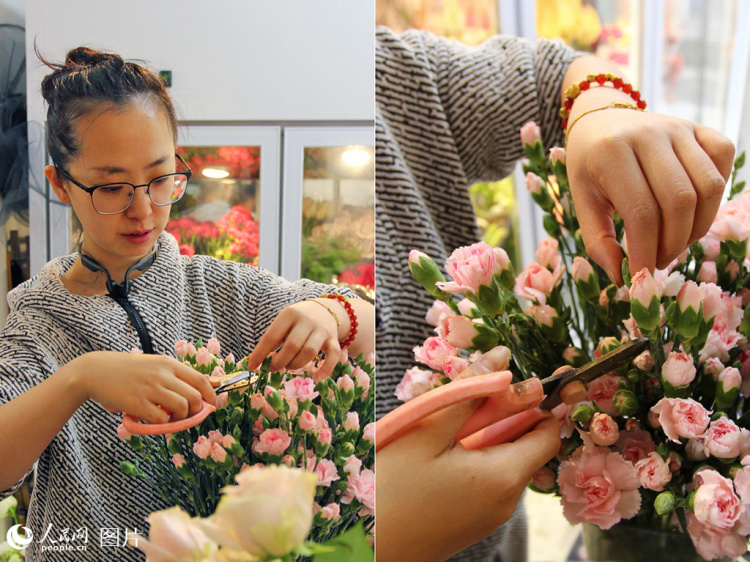 张女士正在修剪花枝。人民网记者 米媛摄